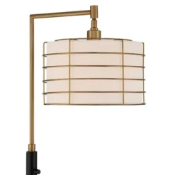 - Double shade design with a sheer organza outer shade with metal trim. Linen inner shade. 7-foot long silver cord.